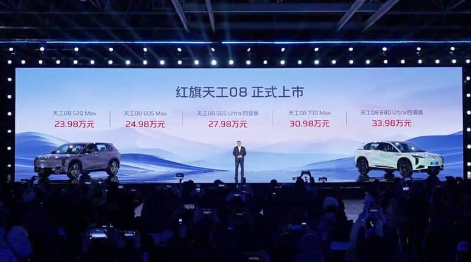 In China, the Hongqi Tiangong 08 is available with three different batteries: 75 kWh, 85 kWh, and 111 kWh. Both the 75 kWh and 85 kWh versions use lithium iron phosphate batteries. The smaller pack is supplied by BYD subsidiary FinDreams and can give the car a maximum range of 520 Km. Fast charging takes about 25 minutes.