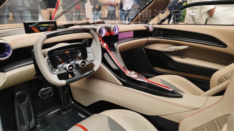 The Hongqi S9 may look like a sports car, but in fact, it isn’t a performance vehicle at all. The displayed prototype has a temporary small ICE that just moves the vehicle and hasn’t got impressive power output. However, Hongqi representatives on site mentioned that their previous problems of the Hongqi S9 were sold and it soon will be manufactured in the Emilia Romagna region, where Ferrari, Lamborghini and Pagani factories are located. We will remind you that FAW has a joint venture with Silk EV here.